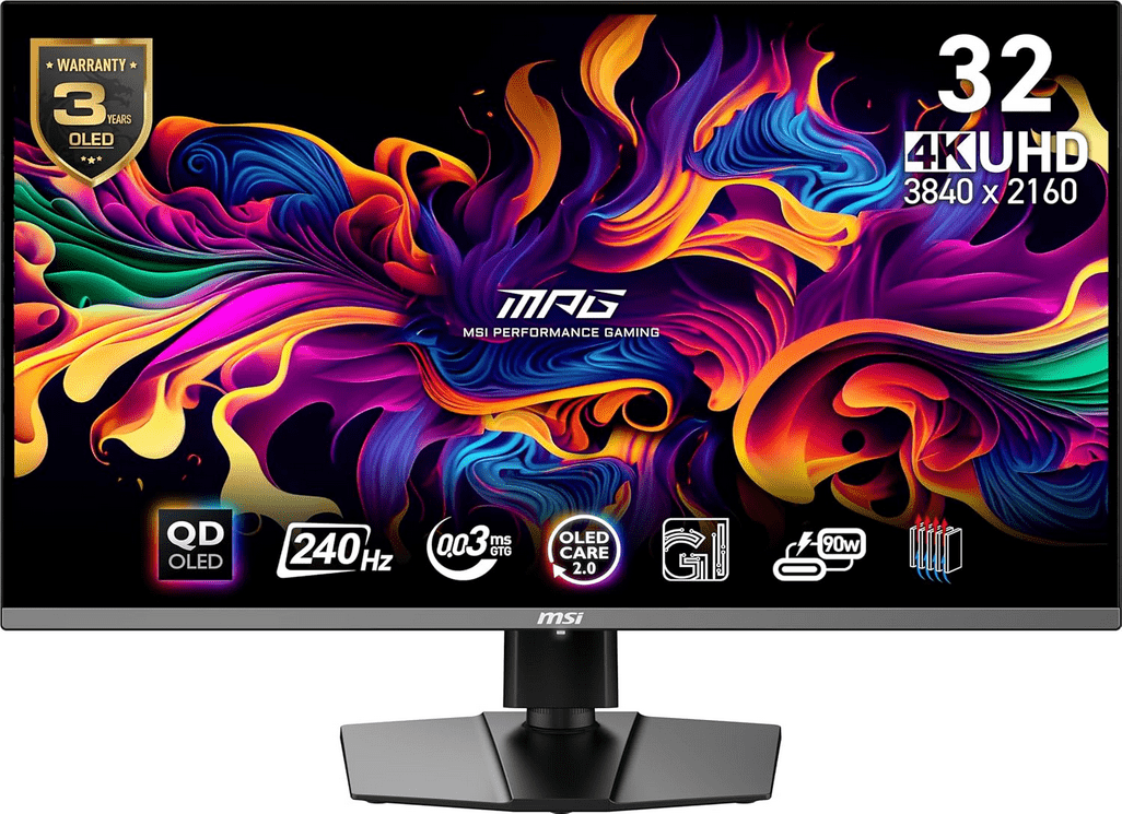 The MSI MPG 321URX is a 32-inch 4K QD-OLED panel running at 240Hz, combining breathtaking resolution with the fluid motion OLED technology is famous for.
